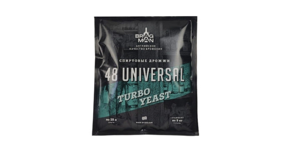 Active dry alcoholic turbo yeast BragMan "48 Universal TURBO" (135 g) with a full range of macro and micro nutrient elements, ideal for fermentation of fruit and sugar base of any raw material (sugar glucose syrup). Turbo yeast BragMan "48 ..